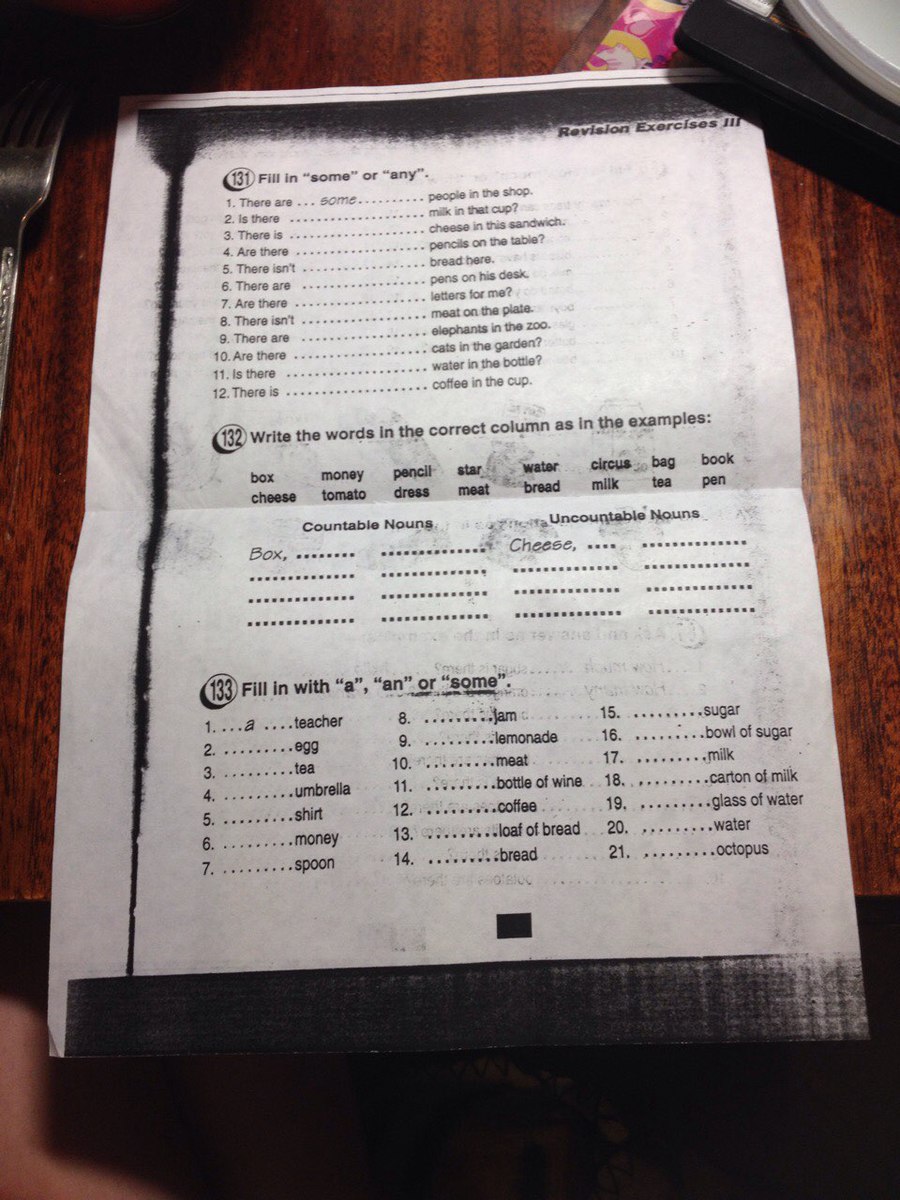 Неисчисляемые: money, water, cheese, meat, bread, milk, tea