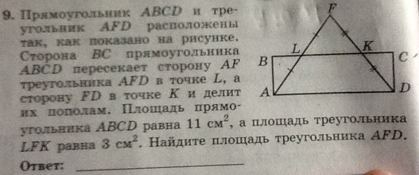 4*3=12см² так как ВС пересекает в центрах в точках L и K