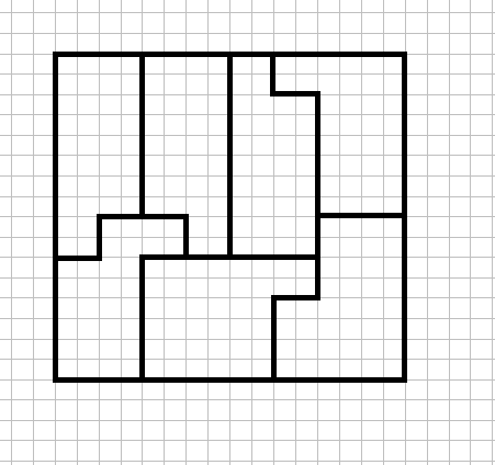Алексей разрезал квадрат 8 на 8 по границам клеток на 7 частей с равными периметрами. Покажите, как он это сделал?