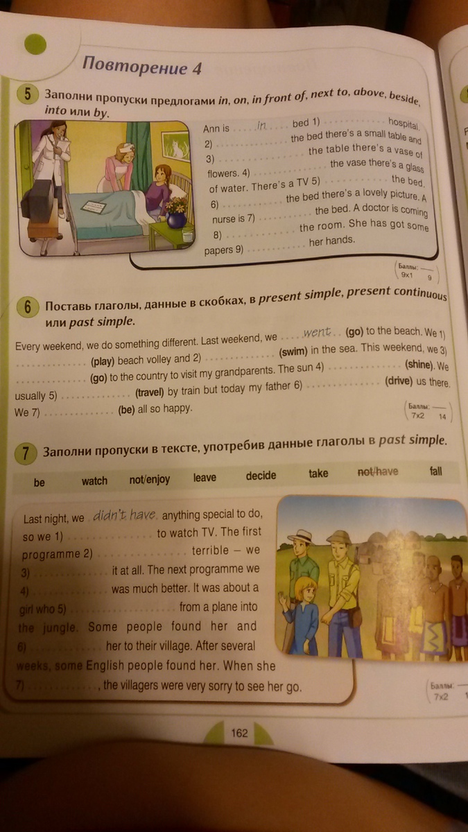 Поставь глаголы, данных в скобках, в present simple, present continuouse, или past simple.