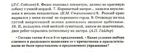 Русский язык 7 класс.Выпиши сначала предложения,содержащие причастия с *не*,затем прилагательные с *не* .Устно и графически объясни условия слитного и раздельного написания не с указанными частями речи.Составь схемы 4го и 5го предложений.Какие условия выбора слитного и раздельного написания не с причастиями и прилагательными не были представлены в предложениях упражнения *?Оч прошу сделайте!!)