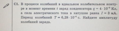 Отсюда Q=√(q²+(T*I/(2*π))²)=√(16*10^-18+(9*10^-18)=5*10^-9 Кл