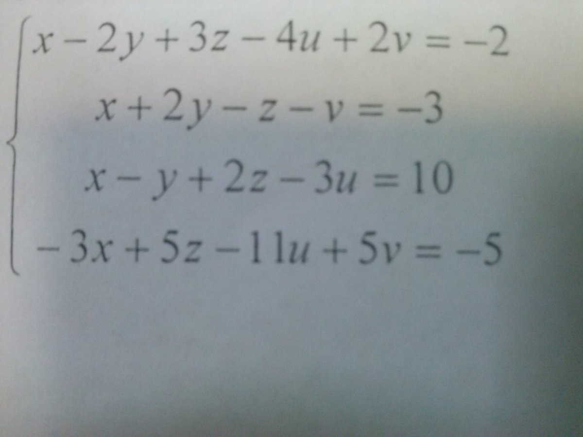 { -3x + 0y + 5z - 11u + 5v = -5
