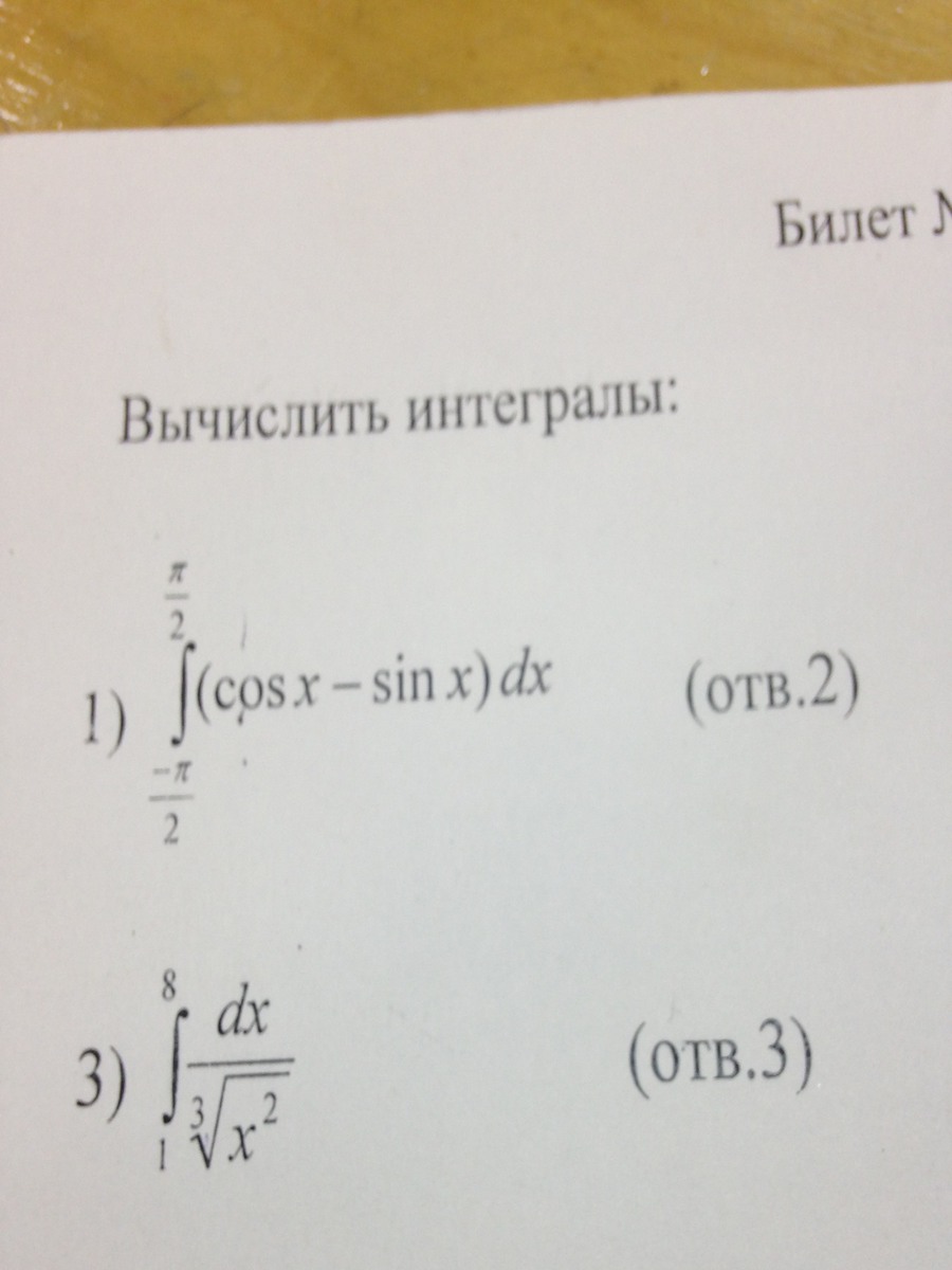 int _{-frac{pi}{2}}^{frac{pi}{2}}(cosx-sinx )dx=(sinx+cosx), |_{-frac{pi}{2}}^{+frac{pi}{2}}=(1+0)-(-1+0)=2