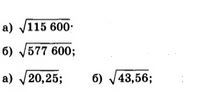используя свойства квадратного корня, найдите с помощью таблицы квадратов значения выражений