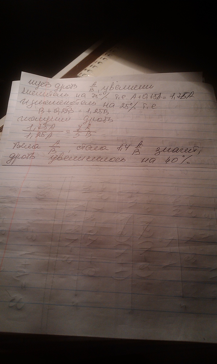 можете помочь с 1 задачей, на сколько процентов увеличится дробь если ее числитель увеличить на 70% а знаменатель на 25%?