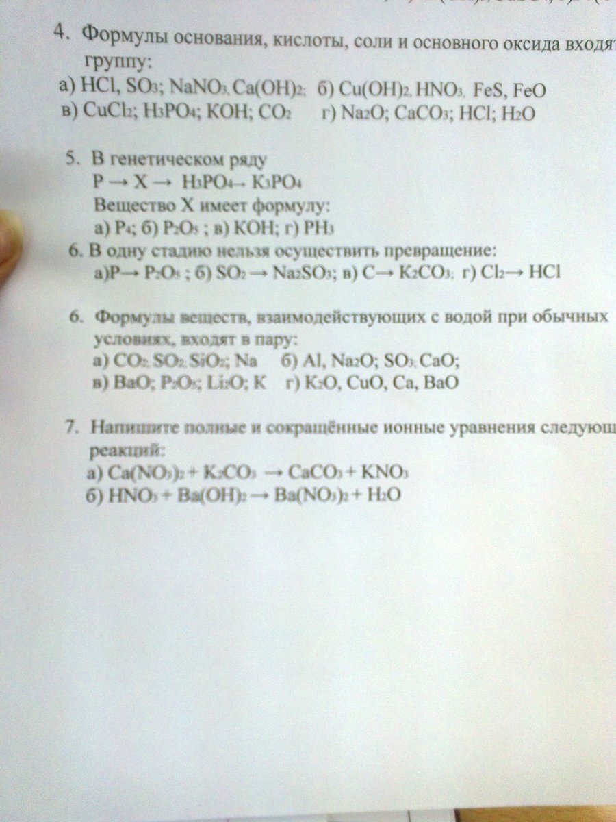 формулы основания, кислоты,соли и основного оксида входят в группу а)Be(OH)2 H3PO4 б)HClO4 H2CO3 в)Сr(OH)3 CuSO4 г) Fe(OH)2