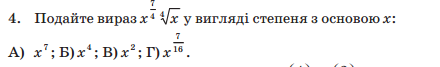 х⁷/⁴ (⁴√х) = х⁷/⁴ х ¹/⁴ = х⁷/⁴⁺¹/⁴ = х⁸/⁴ = х²