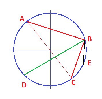 Начертите в тетради окружность.Проведите отрезок АВ с концами на окружности, не являющийся диаметром. Отметьте на окружности точки С, Д, Е так, чтобы угол АВС был прямым, угол АВД -- острым,угол АВЕ -- тупым.