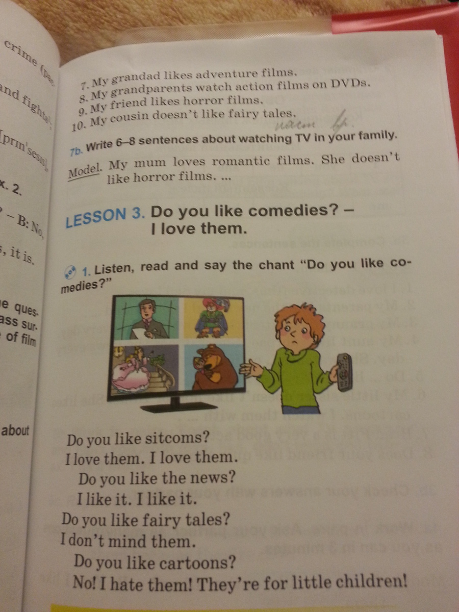 My whole family really like watching TV. My mother likes TV series . Her favorite genre is drama . My dad likes nature . So he prefers to watch programs about environment . My favorite genres are horror and comedy .