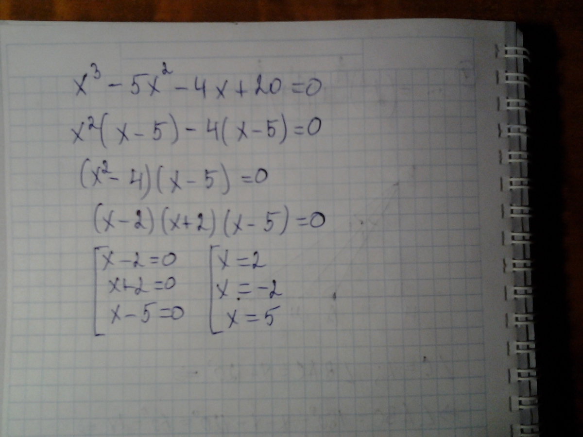 X в третьей степени - 5X во второй степени - 4X + 20 = 0