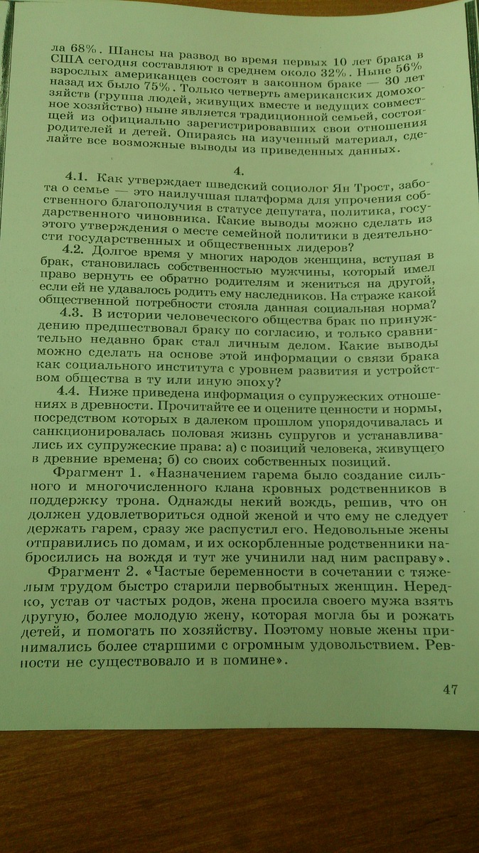 б) с позиции современного человека: в древние времена существовали такие ценности как коллективизм, труд, патриархальная семья. человек не мог прожить в одиночку, чтобы заниматься охотой, земледелием, защищаться от врагов нужна поддержка - большая семья, в наше время иметь большую семью экономически сложно, возникают сложности с квартирой, с распределением домашних обязанностей, с уходом за детьми, кроме того проблема отцов и детей, старшее поколение не понимает младшее, поэтому в наше время наиболее распространенной является нуклеарная семья, и демократические ценности, равноправие в семье не позволяет существовать многожёнству.