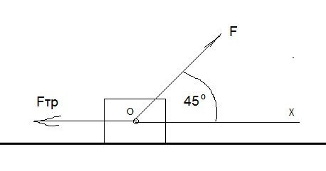 С каким ускорением будет двигаться по горизонтальной плоскости тело массой m=2кг, если к нему приложена сила, направленная вверх по углом a=45 градусов к горизонту и равная 5 Н? Коэффициент трения между телом и плоскостью равен 0,1. ПОМОГИТЕ!!!!еще рисунок надо....