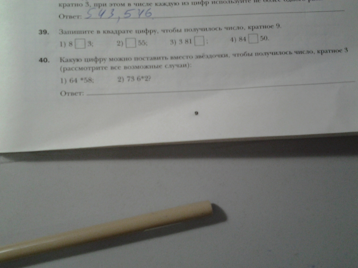 1.Запишите в квадрате цифру чтобы получилось число, кратное 9. 2.Какую цифру можно поставить вместо звездочки чтобы получилось число,кратное 3 (рассмотрите все возможные случаи.