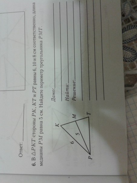 Дано: треугольник PKT, PK=6см,KT=10см, PT=8см.