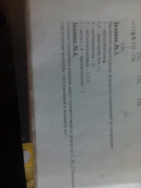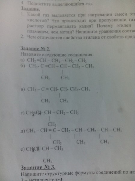2. а) пентен-1 ; б) 2,4-диметилгексен-2 ; в) ,4-диметилгексан-2 ; г) 3-метилпентен-1 ; д) 3,5,7-триметилоктен-2 ; е) 3-метилбутен-1 ;