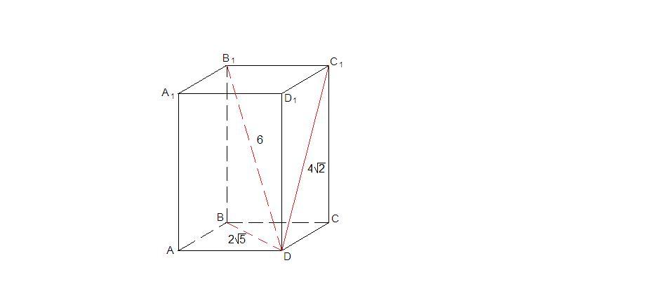B₁D = 6 см, BD = 2√5 см, DС₁ = 4√2 см