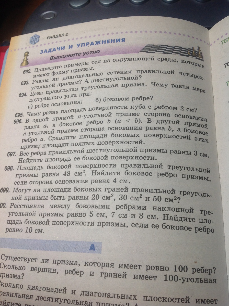 В основании призмы правильный треугольник с стороной 4 см. Боковая поверхность