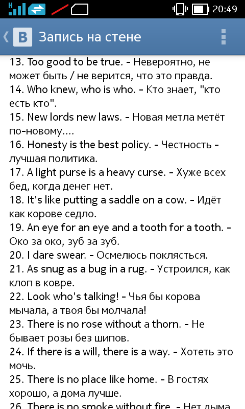 Белая ворона. – Rara avis. (букв.: «редкая птица»)Белый нал (разг., «законные наличные деньги, зафиксированные в финансовых документах и облагаемые налогами») – White cash. (букв.: «белая наличность»)Биться как рыба об лед. – To pull the devil by the tail. (букв.: «тянуть черта за хвост»)Больной вопрос. – A sore subject. (букв.: «больной вопрос»)Быть на седьмом небе - To tread on air. (букв.: «ходить по воздуху»)Быть не на своём месте. – A round peg in a square hole. (букв.: «круглый колышек в квадратном отверстии»)Быть у кого-либо под башмаком. – To be under someone’s thumb. (букв.: «быть под чьим-либо большим пальцем»)Валять дурака – Act the fool. / Play the fool. /Act the ass. / Play the ass. (букв.: «играть дурака / осла»)Вертеться как белка в колесе. – To be busy as a bee. (букв.: «Быть занятым как пчела»)Взять себя в руки. – To take oneself in hand. (букв.: «Взять себя в руку»)
