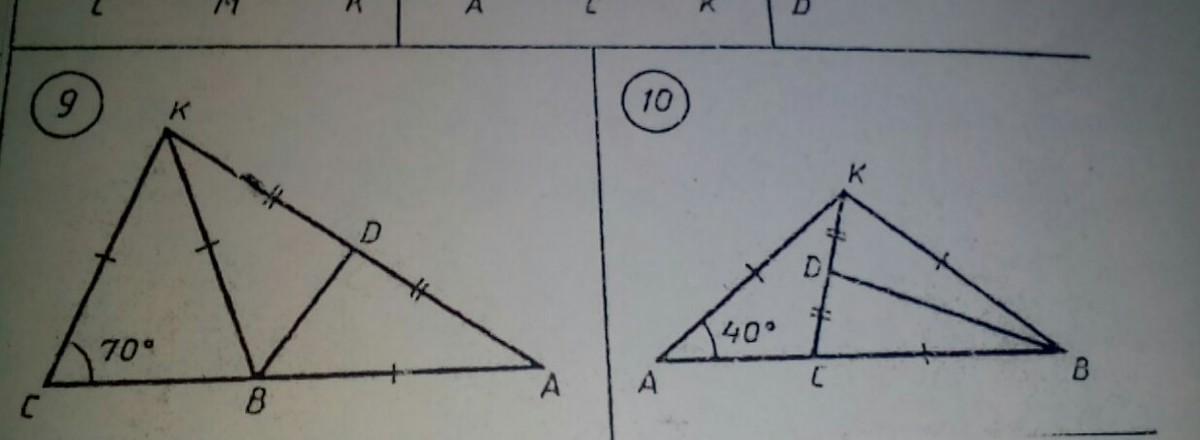 9. Треугольник CKB - равнобедренный (т.к. CK = KB по условию) значит угол КСВ = КВС = 70 градусов
