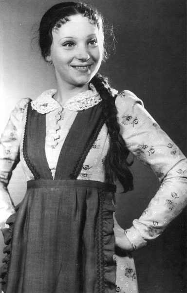 В комедии это также не прослеживается, но я смотрел две постановки и там одни и теже очертания. Фартух, платьеце и волосы заплетённые в косу.