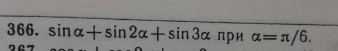 366) sin α + sin 2α + sin 3α при α = π / 6 = 180 / 6 = 30°.