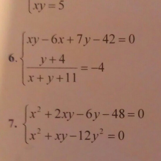 x=(-y+/-7y)/2 -дальше подставляете 2 варианта во второе уравнение и решаете квадратное относительно игрик.