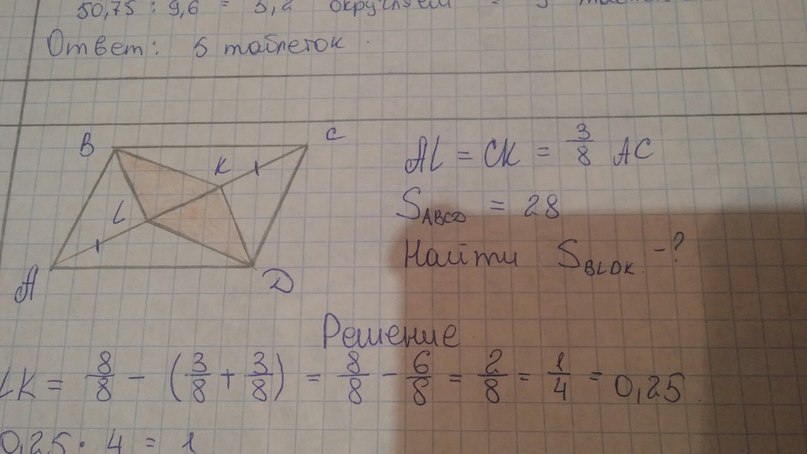 S(ABC) / S(LBK) = AC / LK = AC : (AC/4) = 4