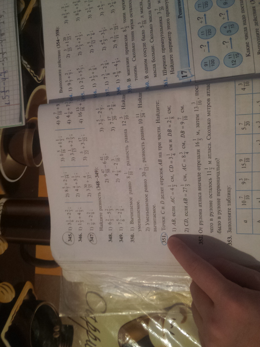 точки С и Д делят отрезок АВ на три части найдите АВ если АС= 4 1/ см. СД=3 1/4см и ДВ =2 1/8см. СД если АВ= 27 1/5 см. АС =8 3/4см. ДВ= 9 7/10см.