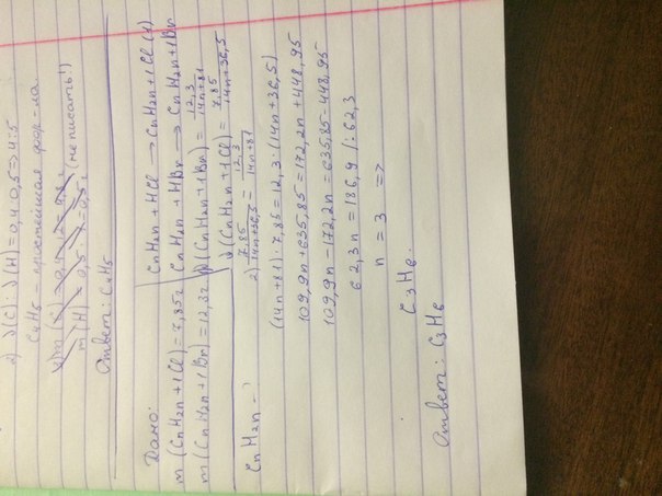Из одной и той же порции алкена можно получить 7,85 г. хлорпроизводного, либо 12,3 г. бромпроизводного. Определи молекулярную формулу алкена.