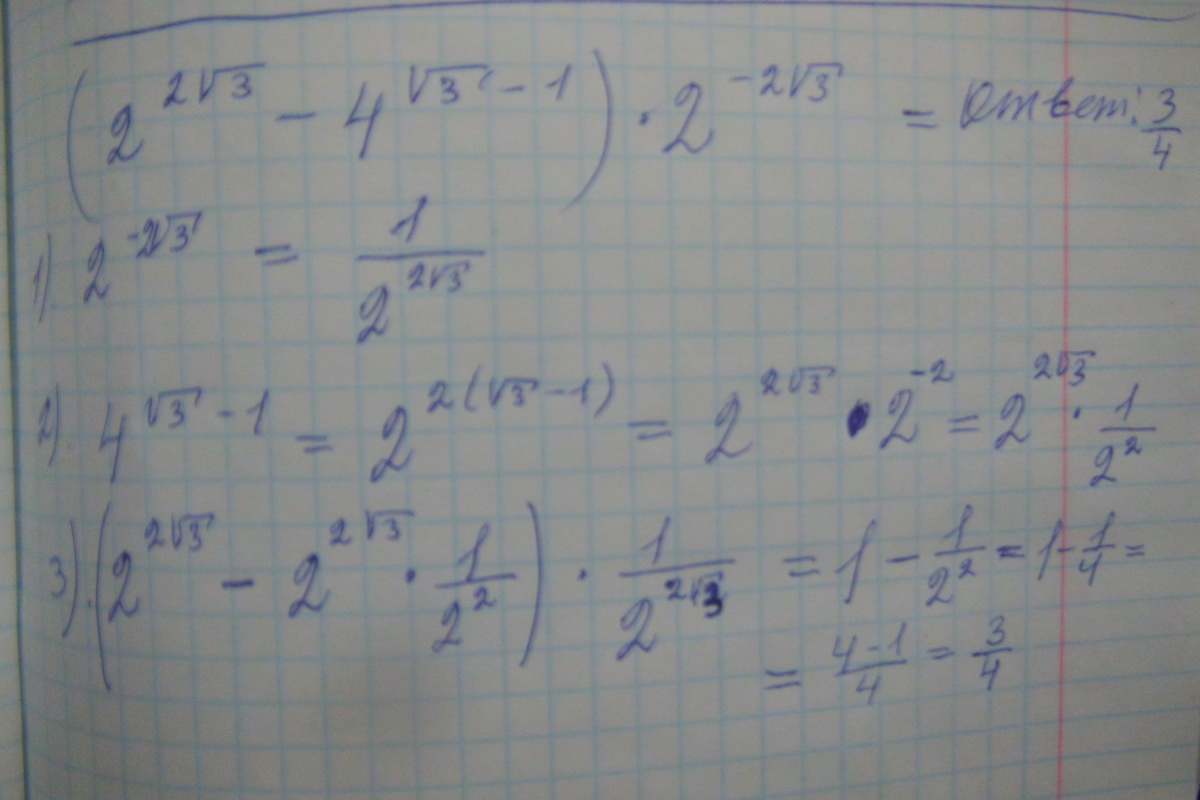 (2^2√3-4^√3-1)·2^-2√3=(раскроем скобки)=2^2√3·2^-2√3-4^√3-1·2^-2√3=