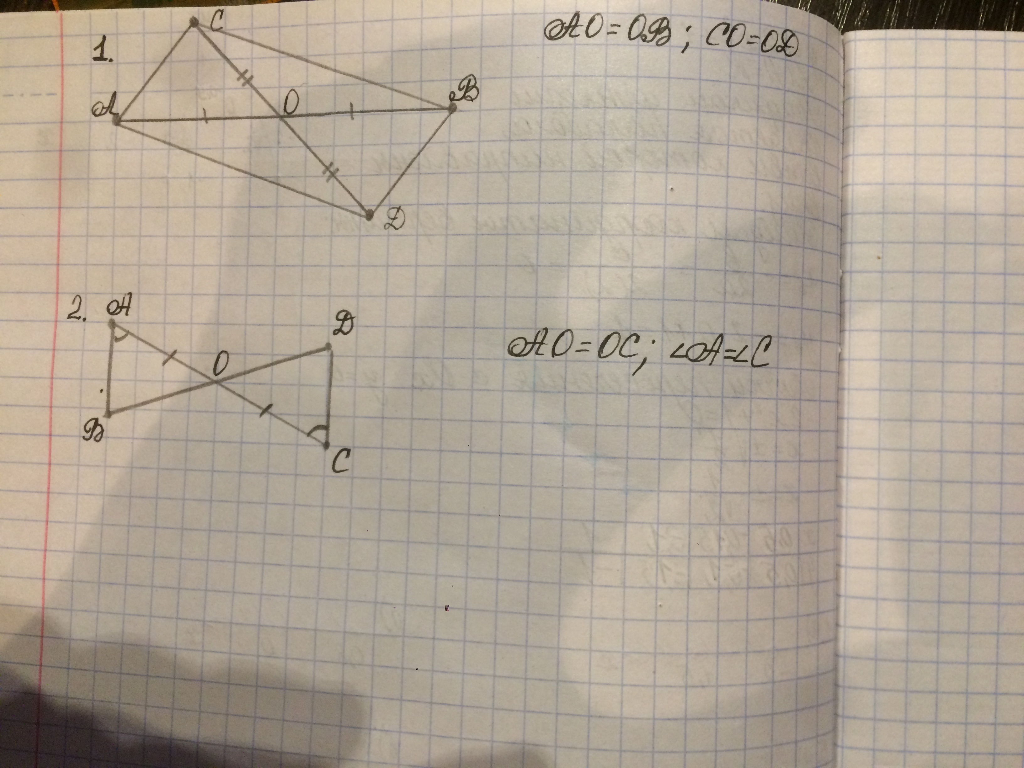 2. Отрезки AC и BD пересекаются в точке О, AO=OC и угол А=углу С. Докажите равенство треугольников AOB и COD.
