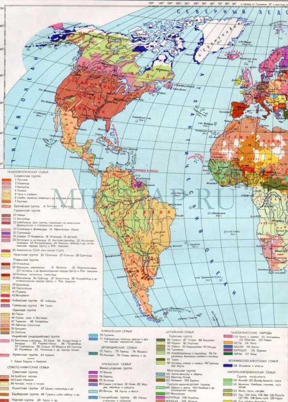 На карте народов мира можно увидеть этнический состав населения, нации,народности,племена,к какой языковой семье и языковой группе она принадлежит,может быть показана плотность населения,религиозный состав.