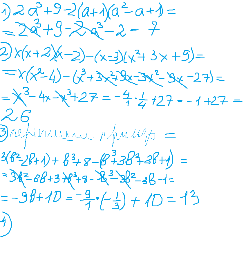 3)3(b-1)^2 + (b+2)(b^2 -2b +4) - (b+1)^3 при b = - 1/3 (это дробь)