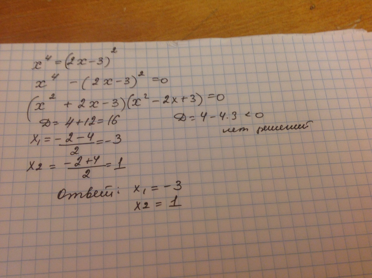 x^{4}=(2x-3)^{2} Решите уравнение.