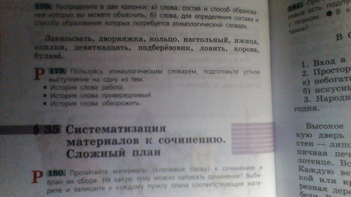 Помогите сделать упражнение № 179 из учебника на фото. Я выбрала слово работа помогите с историей слова!!!!!! Упражнение тоже на фото!!!!
