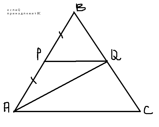 скорее всего у Вас ошибка и Q принадлежит стороне AC. Тогда решение будет.