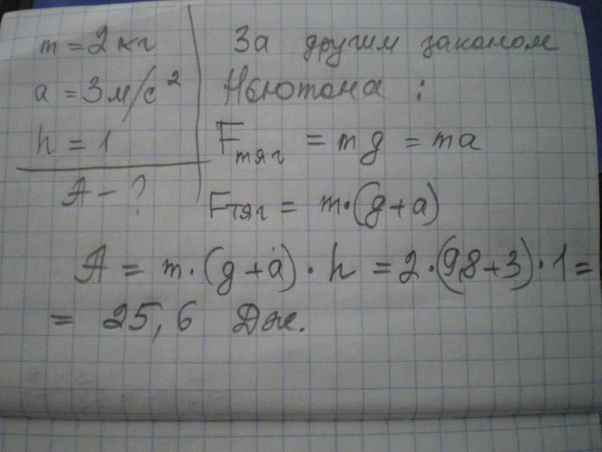Яку корисну роботу виконувала людина піднявши тягар масою 2 кг на вистоу 1 м з прискоренням 3 м/с(2)?