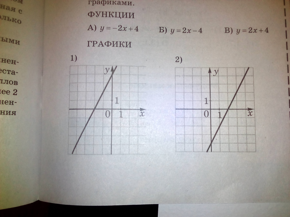 А)y=-2x+4 Б)y=2x-4 В)y=2x+4