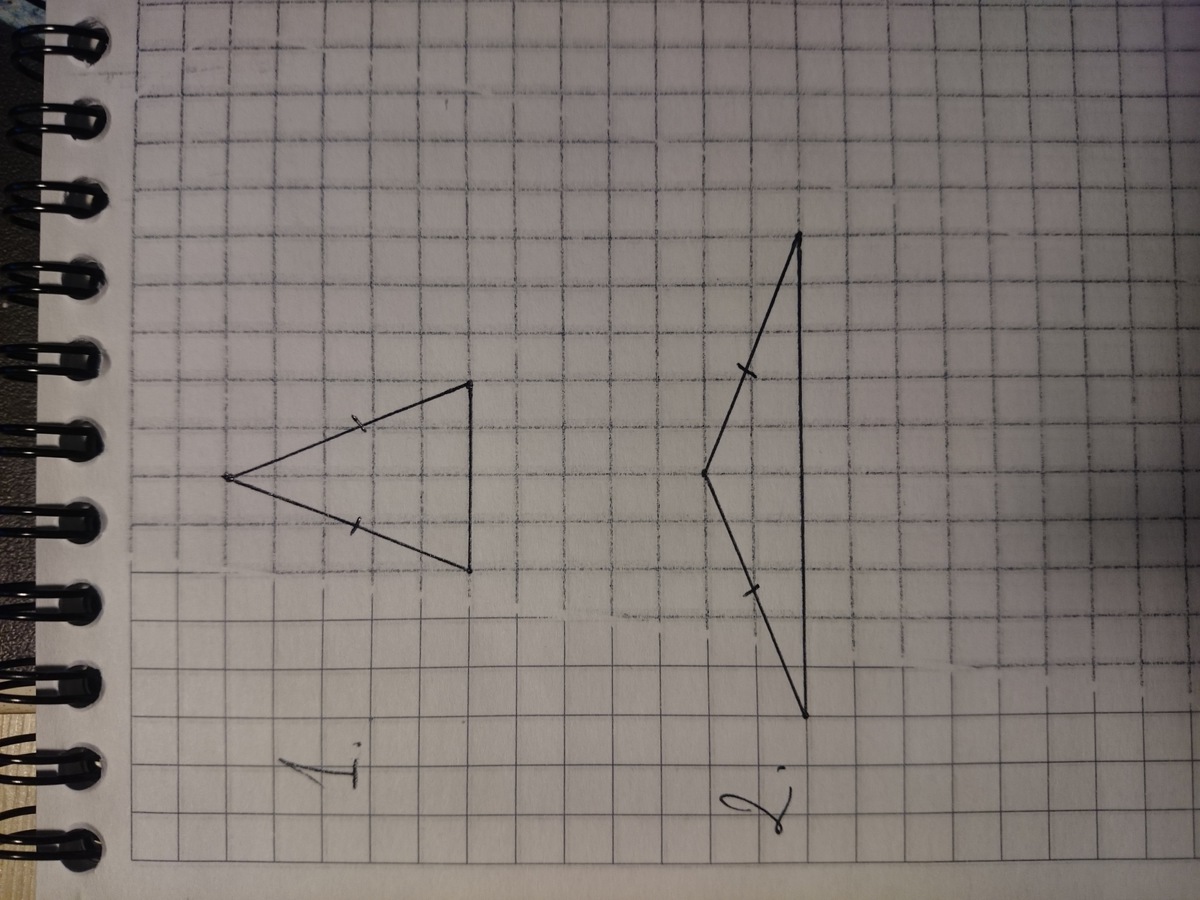 аааааааааааааааа срочно прошуууууууууу начертите два равнобедренных треугольника в треугольниках угол , противолежащий основанию, должен быть 1тупой 2острый