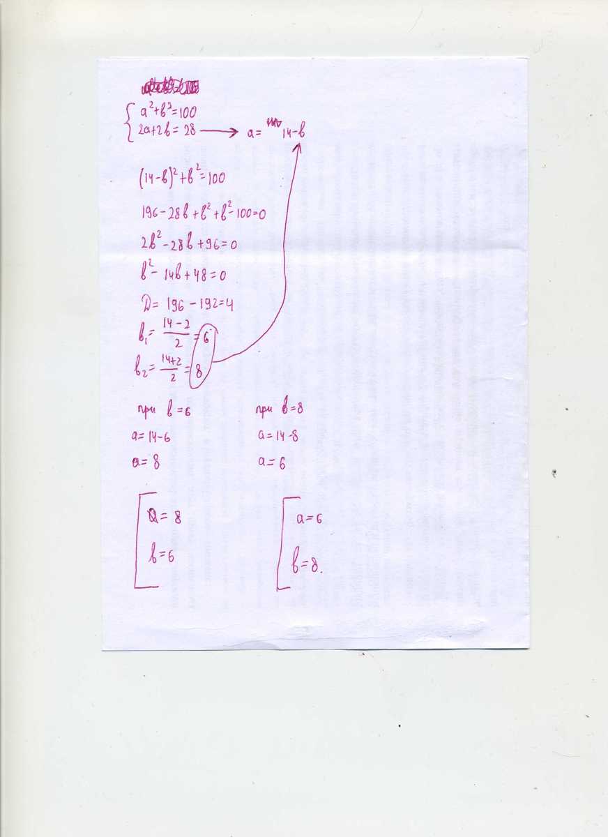 решите пожалуйста системой!) Диагональ прямоугольника 10 см,его Р=28 см,найти стороны и площадь.