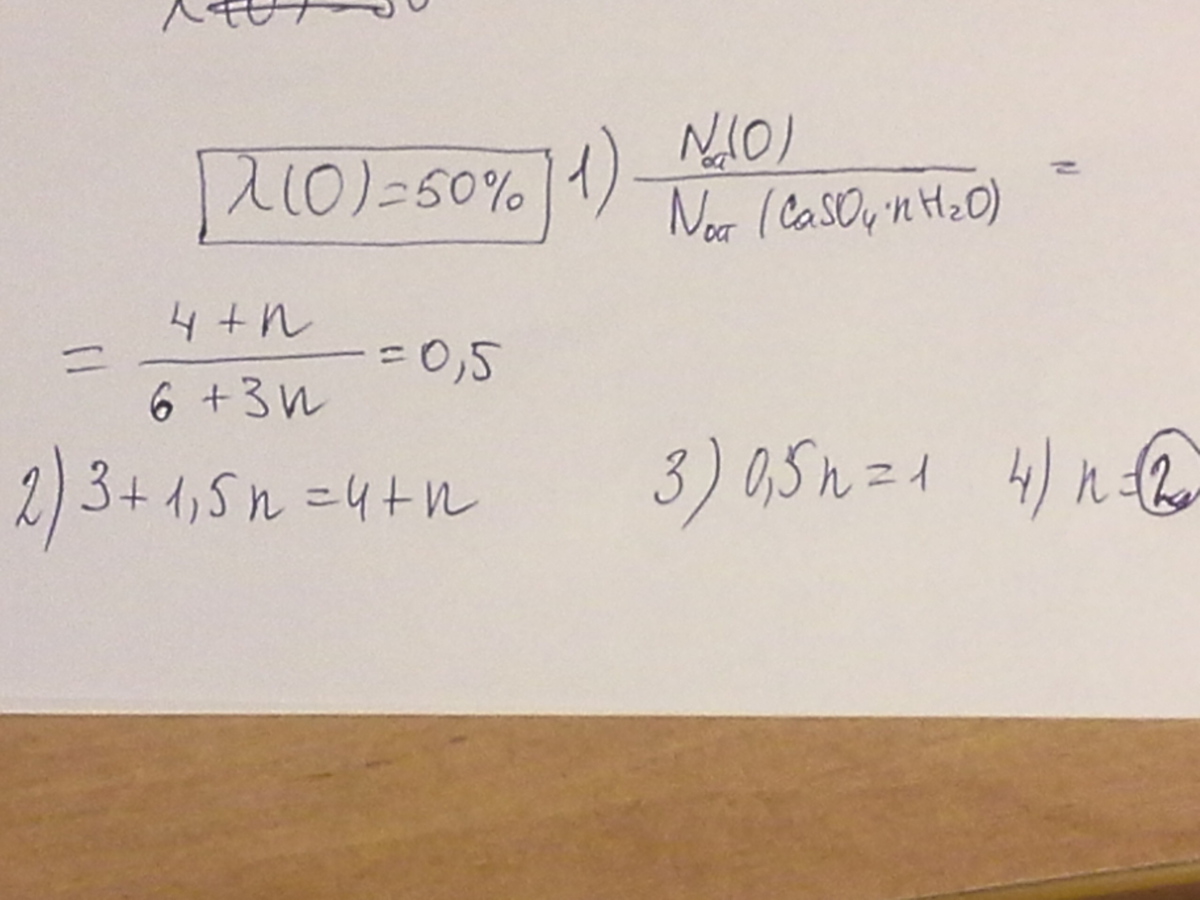 определите n если в кристаллогидрате CaSO4* nH2O число атомов кислорода составляет 50% от общего числа атомов