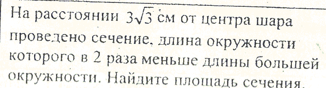 R- радиус большого шара, r- радиус cечения , тогда из условия