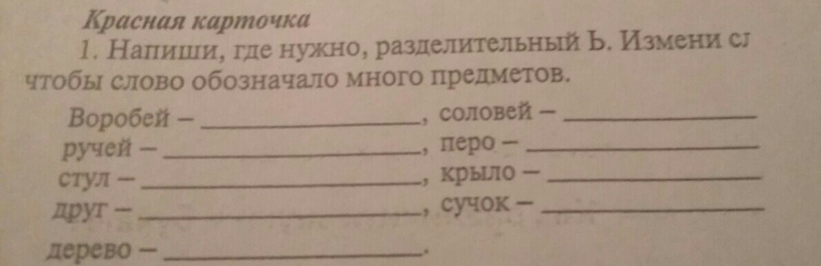 ВоробЬи,РучЬи, СтулЬя, ДрузЬя, ДеревЬя,СоловЬи, ПерЬя, КрылЬя, СучЬя