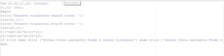 d1:=Sqrt(x1*x1+y1*y1); //Теорема Пифагора