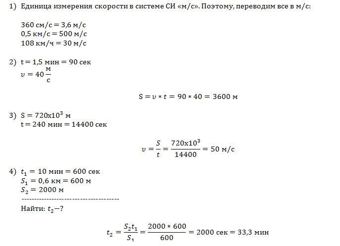 1)Переведите в(м/с): 360 см/с; 0,5 км/с; 108 км/ч