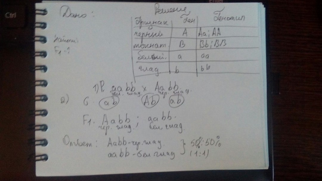 черный цвет и мохнатость доминантные признаки .Скрестили белую гладкую особь с гетерозиготной чёрной гладкой.Какое потомство можно ожидать от скрещивания?