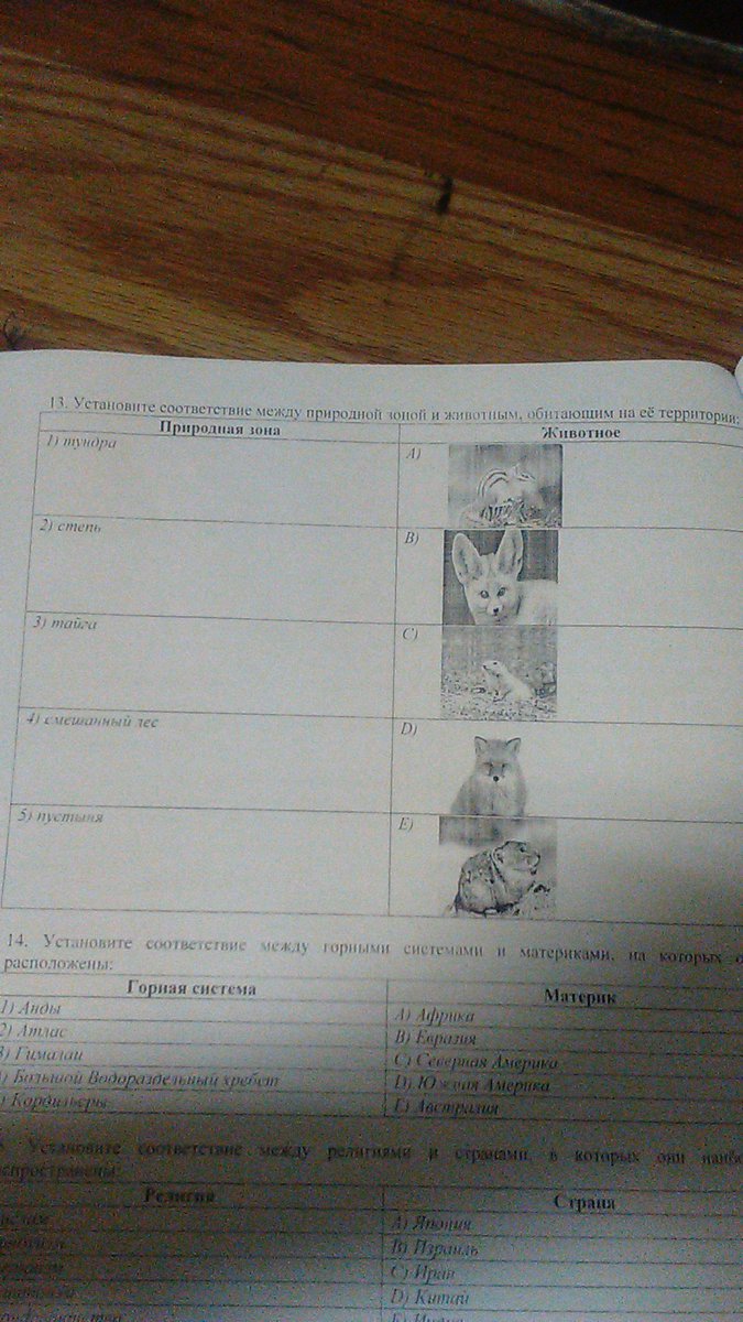 Вопрос : установите соответствие между природной зоной и животным, обитающим на её территории.