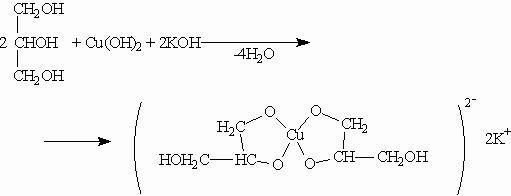 На глицерин : C3H5(OH)3 + Cu(OH)2 = ярко-синего цвет