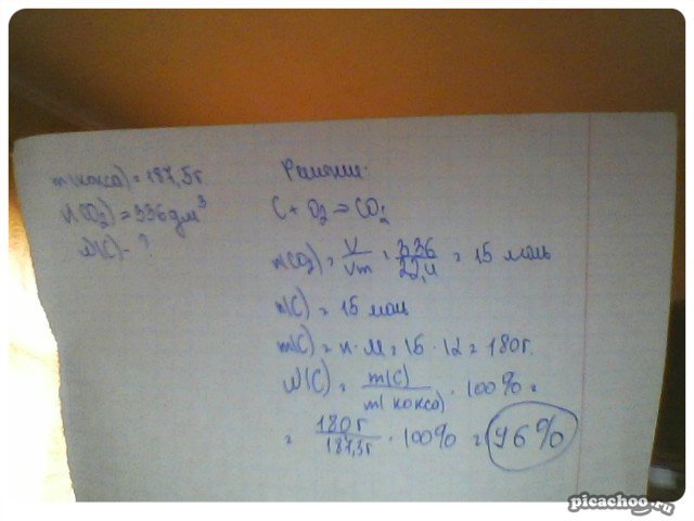 СРОЧНО!ПОЖАЛУЙСТА!При сжигании кокса массой 187.5г образовался углекислый газ объемом 336л .Вычислите массовую долю углерода в коксе.ОЧЕНЬ НУЖНО.